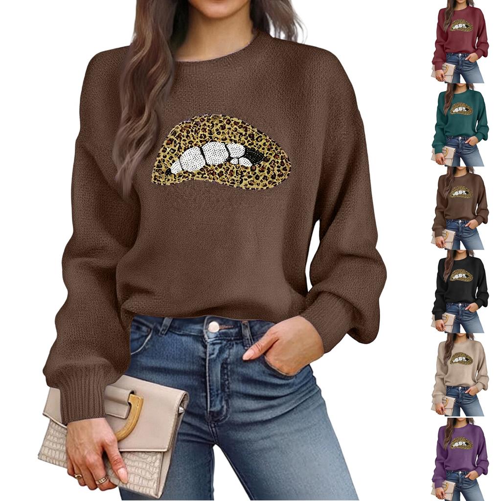 Women's Winter Leopard Embroidery Sequin Lips Round Neck Pullover features: 1. High quality ,, suitable for daily wear 2. Unique design makes you more attractive. 3. Perfect with your favorite shorts, tights, black casual pants, jeans, etc 4. Suitable for daily leisure, I you will like it! 5. Comfortable and relaxed, more comfortable to wear Product information: 1. Fashion women's wear. 2. Round neck design makes you more attractive. 3. High quality manufacturing. 4. Fashionable long sleeves. It's fashionable and makes you so beautiful. ,: 95% polyester, 5% elastane Occasion: daily, case, Party Washing method: machine washing : spring, summer, and winter Please note that a slight color difference is acceptable due to the light and screen. Washing care: Hand or machine wash in cold water