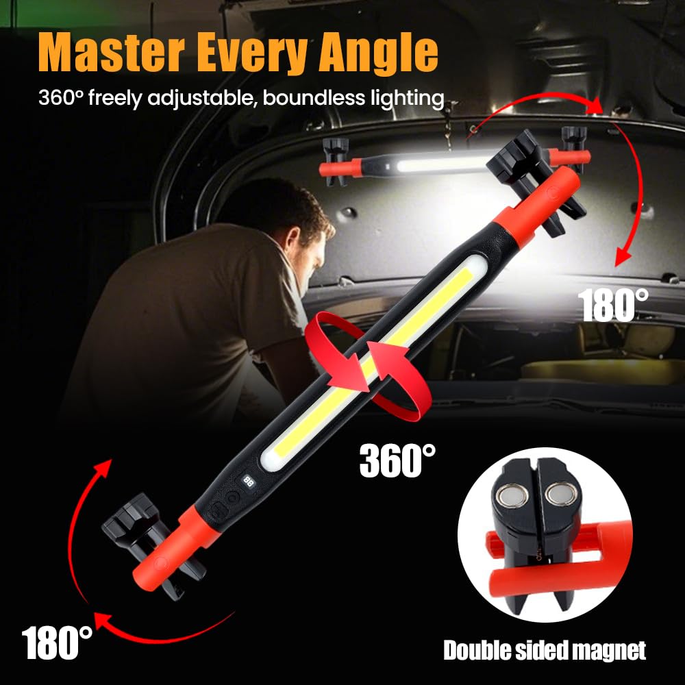 Rechargeable LED Mechanic Work Light with Hook COB Magnetic Base 360° Swivel Flashlight for Car Repair Emergency Lamp 4 Modes