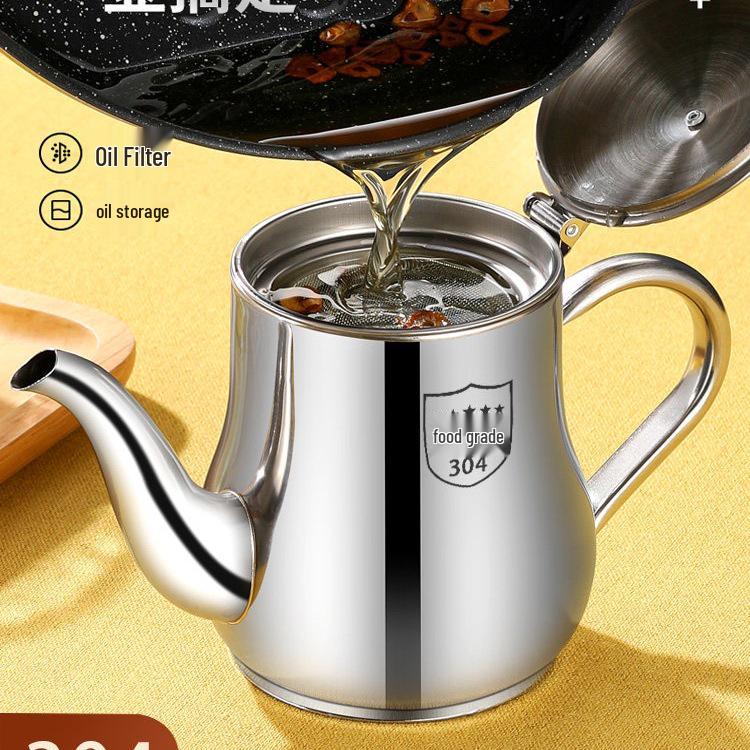 304 Stainless Steel Oil Pot with Filter Screen - Food Grade, No Drip, 3 Jin Capacity for Kitchen Use