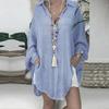Loose Fit Cotton Linen Blouse Women Long Sleeve Shirt Solid Color Thin Spring Summer Large Size