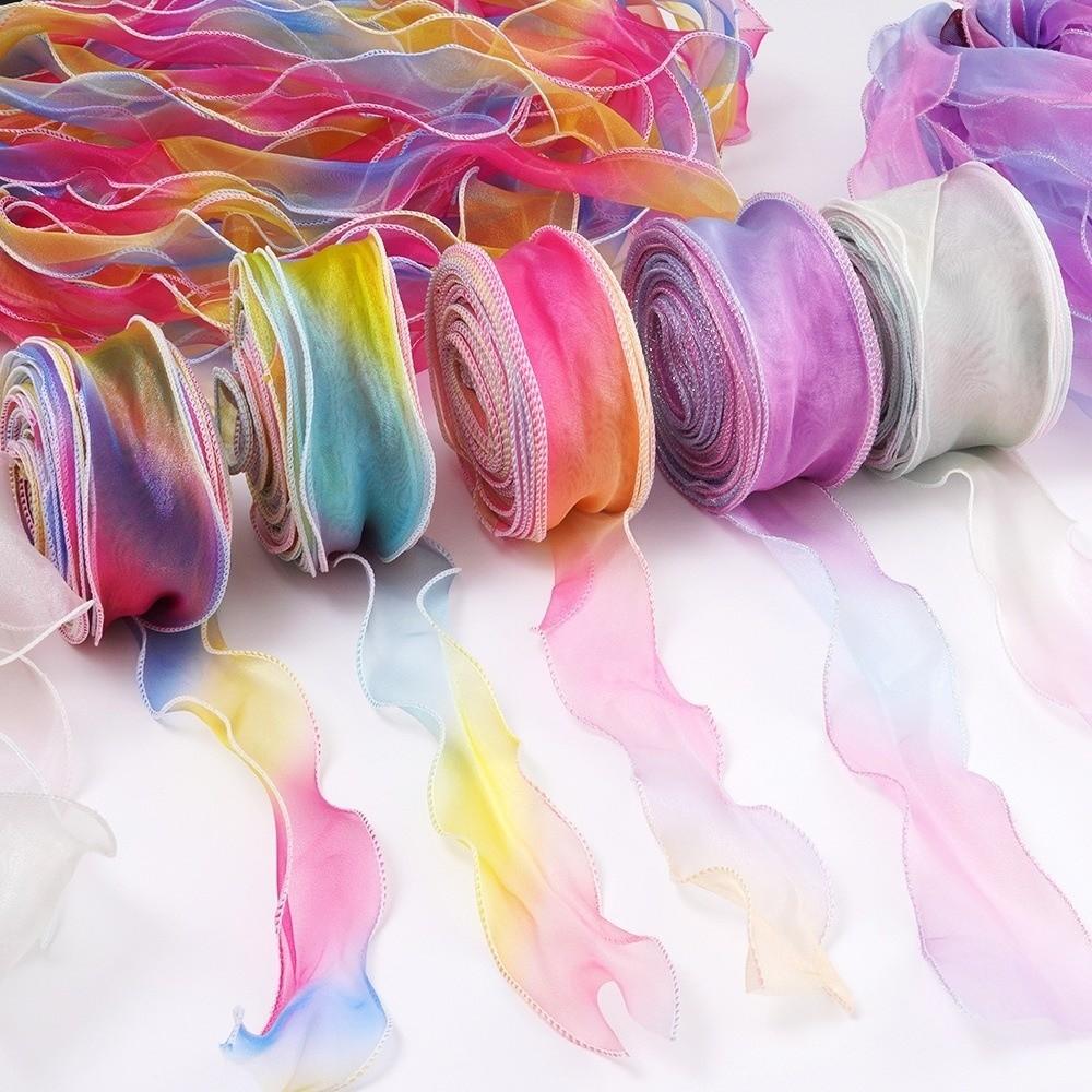 10 Yards Length Organza Ribbon Gradient Colored Lace Ribbon Ribbons Satin Ribbon Bow Material