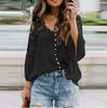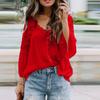 Women's Lace Shirt Women's Long Sleeve Color Deep V Pullover Chiffon Shirt