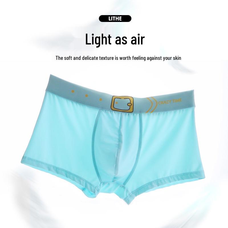 New Men's Summer Breathable Ice Silk Boxer Briefs Mid-Waist Underpants