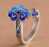 Women's Retro Blue Auspicious Clouds Ruyi Enamel Open Ring