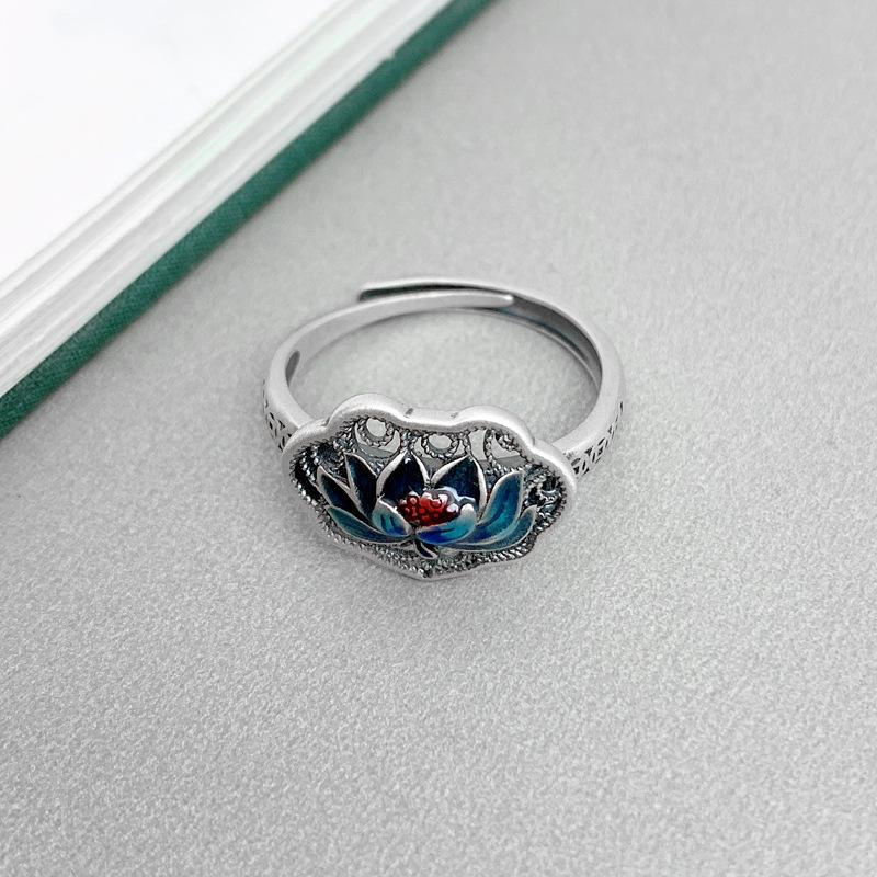 Adjustable 925 Sterling Silver Blue Lotus Ring for Men and Women