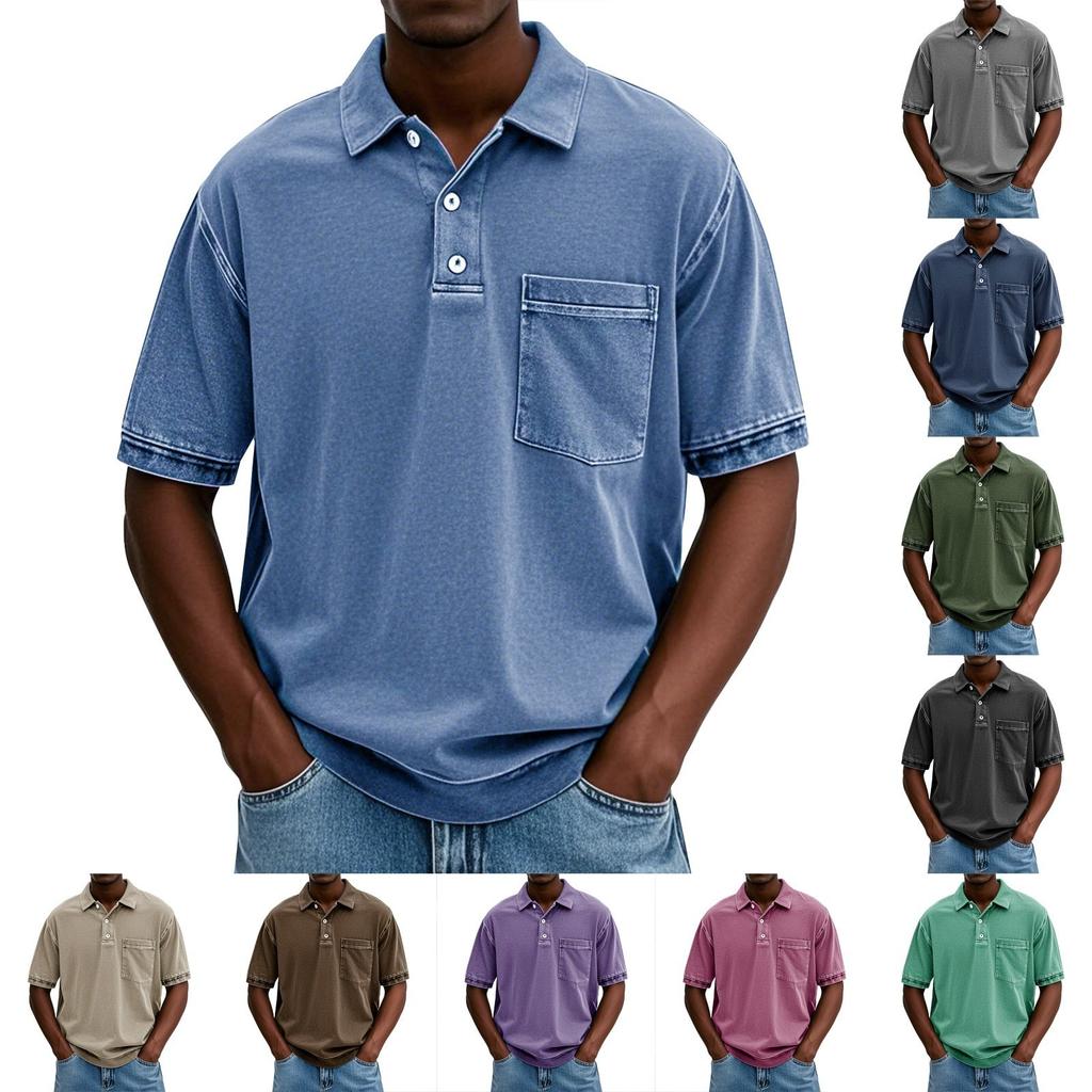 Men's Summer Color Button Collar Short Sleeve Tops Men's Casual Loose Fashion Tops