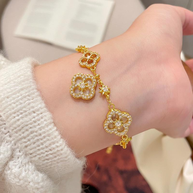 Adjustable Four-Petal Zircon Flower Bracelet - Elegant Hand Jewelry for Women, 2026