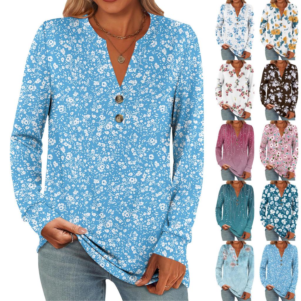 Women's Fashion Casual Floral Print Long Sleeve T-Shirt Pullover Top