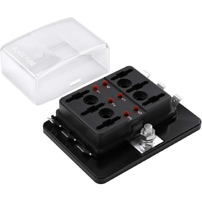 6-Way RV Fuse Block Blade Fuse Box DC12~32V 12V Junction Box Jtron LED Indicator Fuse Block for Blown Fuse Protection Cover 100 Amps for Automotive