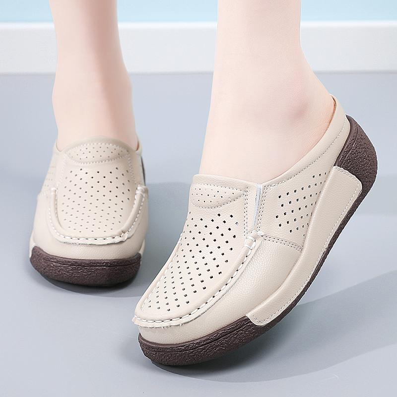 Ladies Platform Loafers Casual Elegant Leather Sandals Clog Slippers Backless Mules Women Thick Sole Height Increase Shake Shoe
