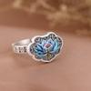 Retro Blue Lotus Adjustable Ring - Hollow Design, Simple & Versatile for Women