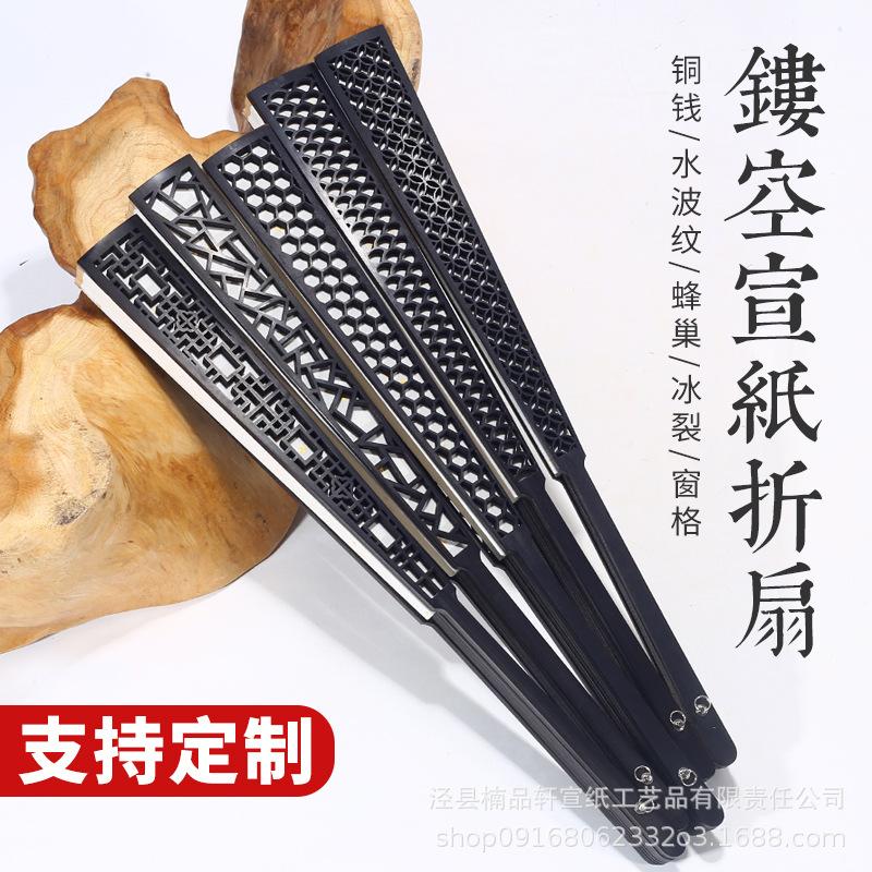 10" Black Xuan Paper Folding Fan with Gold Splash & Tassel - Ancient Chinese Style, Elegant & Foldable Men's Accessory