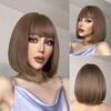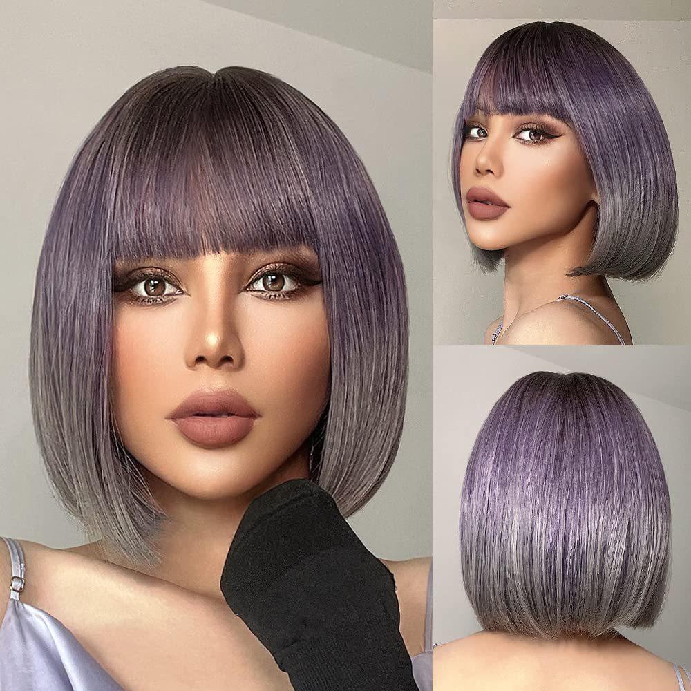Wig European American Women's Fashionable Synthetic Head Cover Purple Gradient Color Bangs Short Straight Hair Wavy Inner Buckle