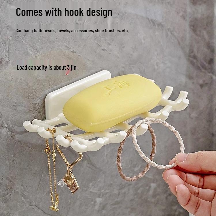 Wall-Mounted Imitation Rattan Grid Soap Holder, Punch-Free Plastic Shower Drain Box