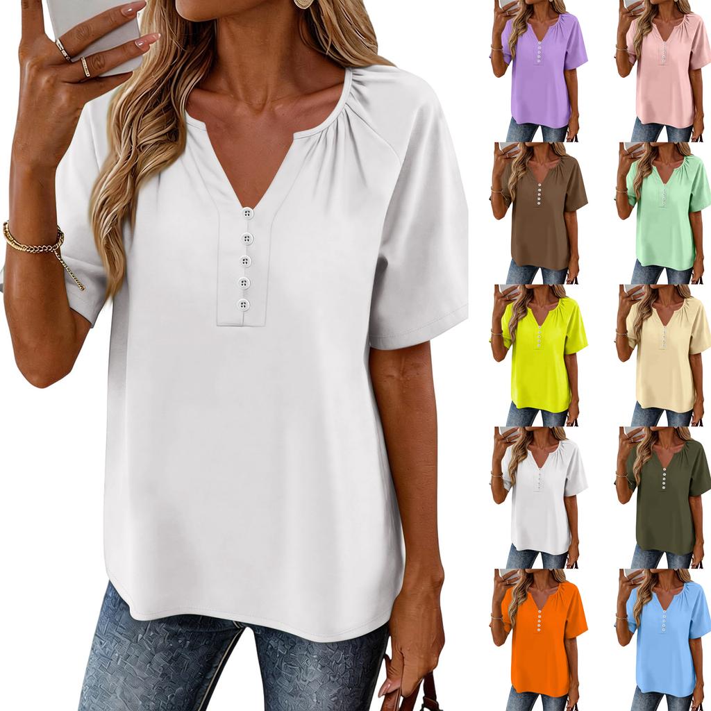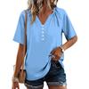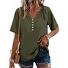 Women's Fashionable Casual Button V-neck Short-sleeved Top