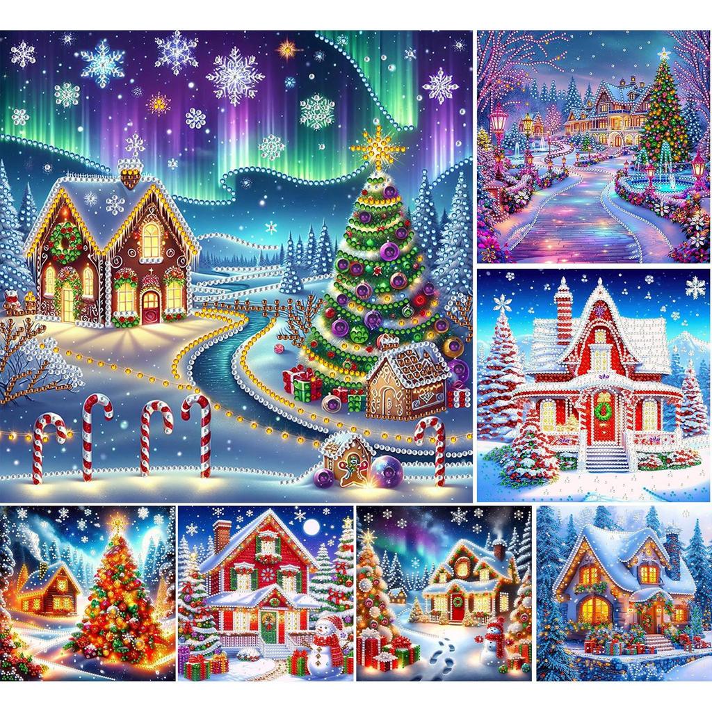 Christmas House Diamond Art Kits for Home Wall Decoration DIY Gem Art Diamond Painting Kits Diamond Dots Gem Art 11.81x11.81in