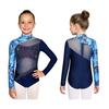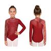 Kids Girls Performance Leotard: Long Sleeve Mock Neck with Mesh Patchwork & Butterfly Print Rhinestone Bodysuit Back Zipper
