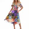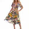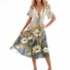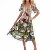 Women's Casual Fashion Flared Skirt V-neck Short-sleeved Floral Print Dress