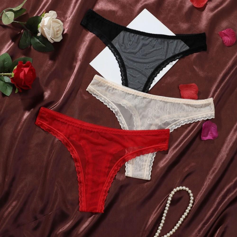 Transparent Mesh Briefs Women Low Waist Romantic T Panties Mesh Sheer Lace Thong Ladies Girls Gift