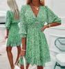 Dress Summer, New Printed Dress Loose Fashion V-neck Chiffon Pleated Skirt