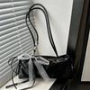 Fashi Bow Lace Ribbs Pu Shoulder Bags for Women Versatile Commuter Ladies Underarm Bag Solid Color Female Handbags Purse