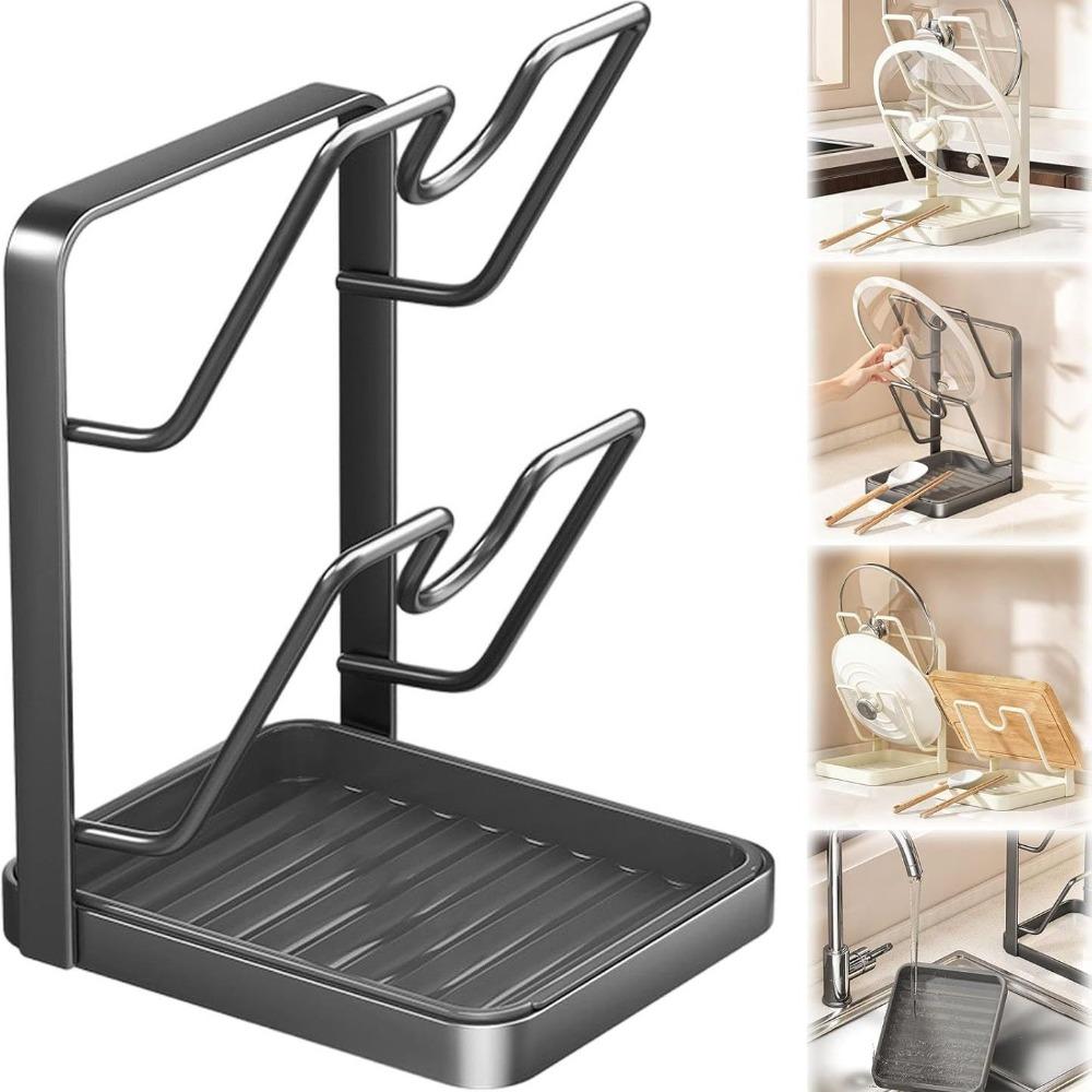 1 Grey Lid Storage Rack, Kitchen Lid Rack, Spatula Rack for Kitchen Countertop YQ