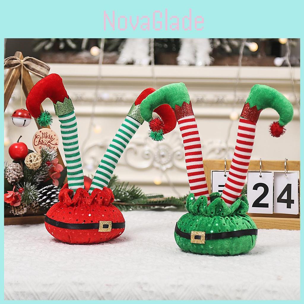 This playful decoration features a charming design with a red and white striped belt, reminiscent of the classic elfin attire, bringing a nostalgic vibe to your Christmas celebrations. The bendable feature adds versatility, allowing you to position the elf foot in fun and creative ways, making it an interactive element of your holiday decor.