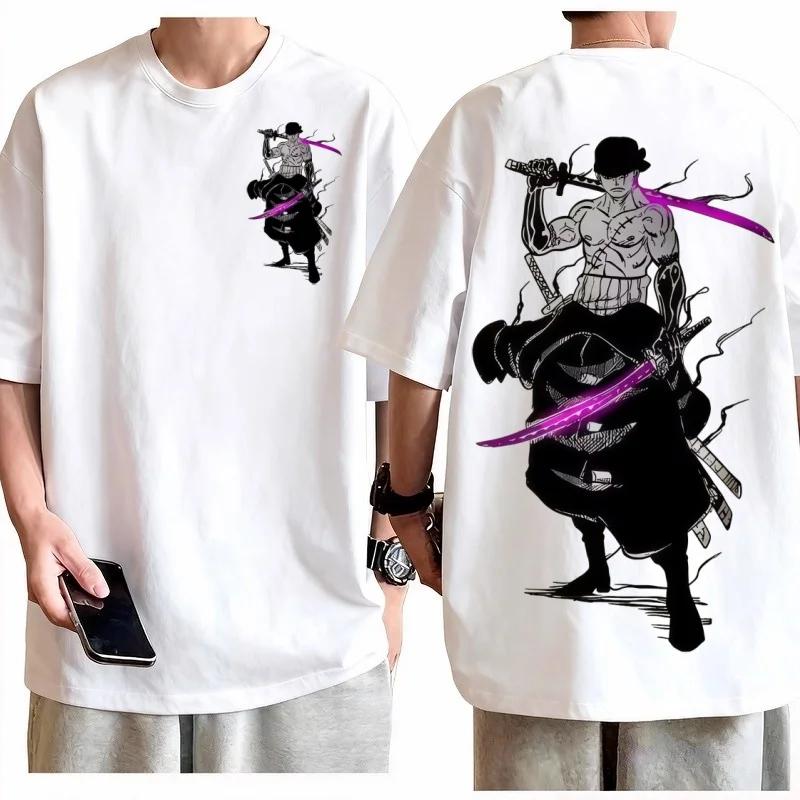 One Piece Roronoa Zoro Purple Blade T-shirt Men Women Cotton Anime Graphic Tee Regular Fit Short Sleeve Casual Daily Top