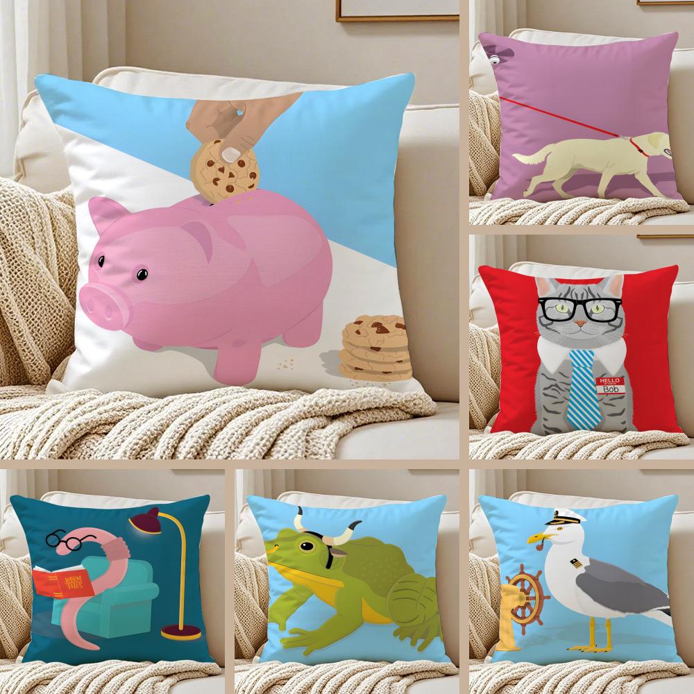 Funny Animal Illustrations Art Cushion Cover Pillowcase Antidustmite Invisible Zipper Short Plush Sofa Cushion