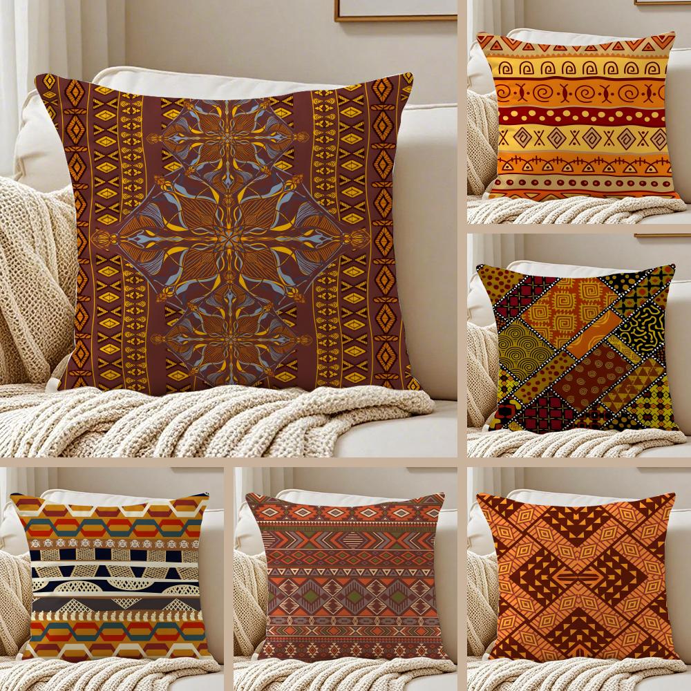Tribal Style Indian Ethnic Pattern Cushion Cover Pillowcase Antidustmite Invisible Zipper Short Plush Sofa Cushion