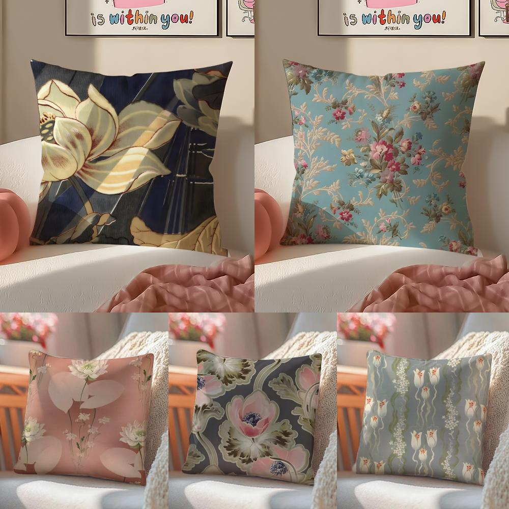 French Textile Floral Art Cushion Cover Pillowcase Short Plush Invisible Zipper Room Sofa Cushion Cover