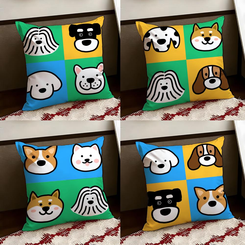 Cartoon Simple Cute Dog Cushion Cover Reversible Soft Durable Pillow Cover Home Car MultiScene Use for Daily Comfort