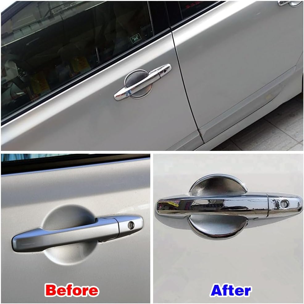 Compatible for Honda Civic 2006 2007 2008 2009 2010 2011 Exterior Door Handle Cover and Door Bowl Covers Scratch Protector Decor (Chrome Color)