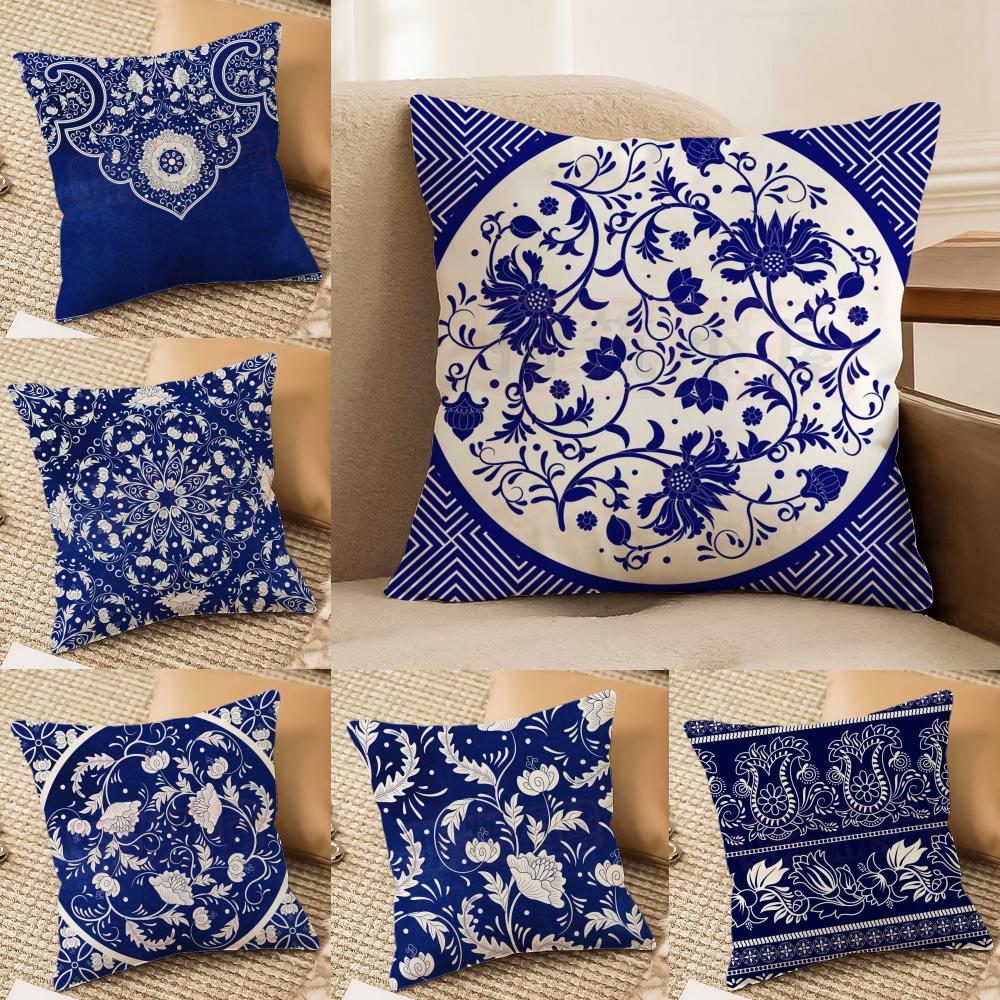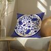 Ethnic Style Blue Floral Pillow Case Silky Elegant Comfort Sofa Bed Invisible Zipper