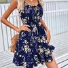 Summer New Elegant Sleeveless Pullover Splicing Elastic Waist Suspender Women's Dress