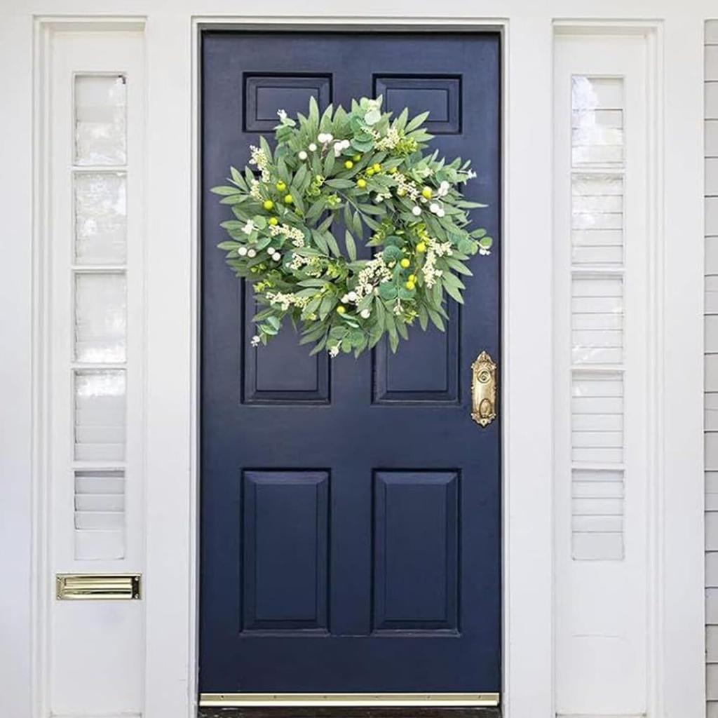 Wreath Simulation Leaf Wreath Hot Wreath Spring And Summer Door Hanging Decorative Ring Artificial Wreath: This front door wreath is handmade with high-quality leaves and small flowers and other materials, which looks more natural and real, sturdy and not easy to fall apart