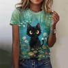 Colorful Cat Pattern T-Shirt For Women Cartoon Pet 3D Printed Tees Summer Harajuku Round Neck T Shirts Short Sleeves Loose Tops