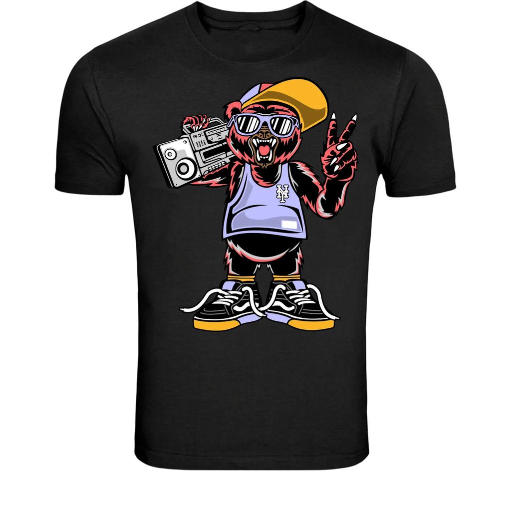Hip Hop Bear Boombox T-Shirt - Street Rap Music Cartoon Graphic