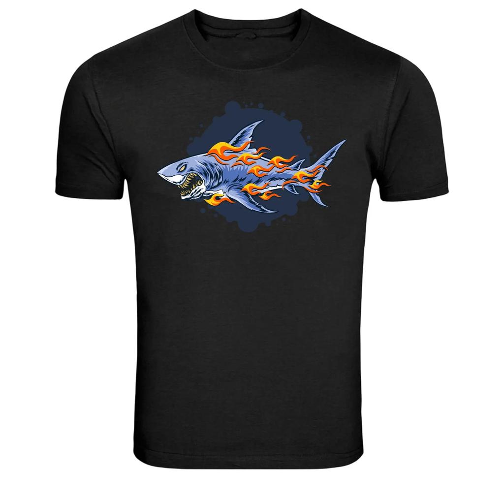Flaming Shark Graphic T Shirt Fire Ocean Predator Tee
