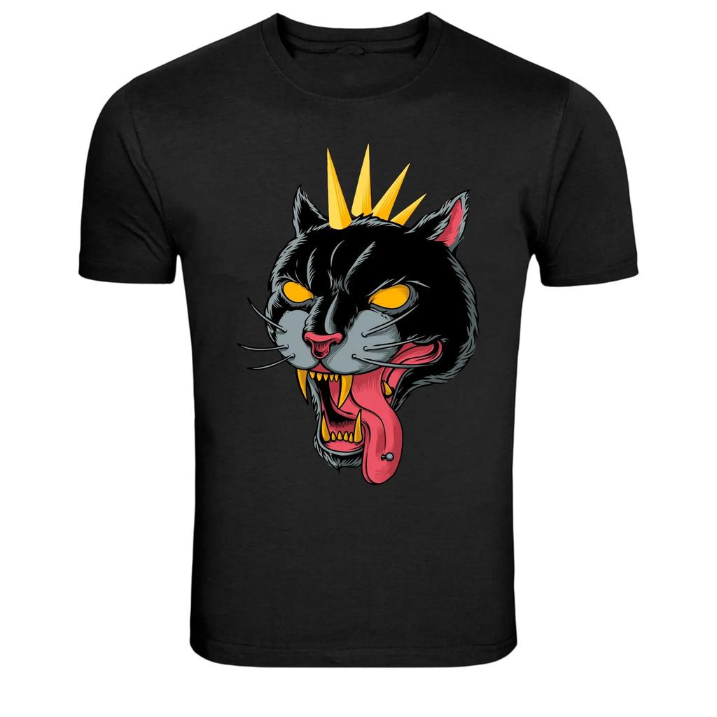 Punk Black Cat With Crown Rock Cat Attitude T-Shirt