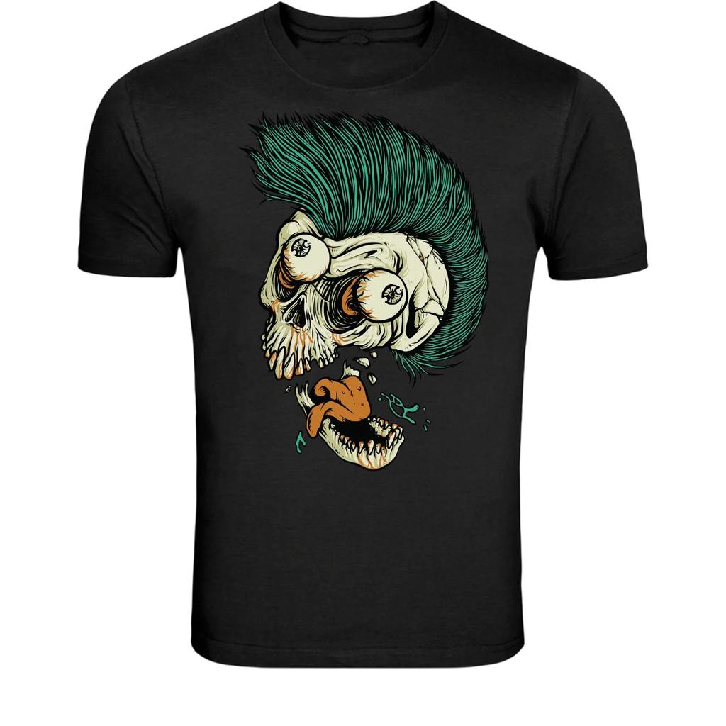 Punk Skull Mohawk T-Shirt - Crazy Punk Rock Skeleton Graphic Tee