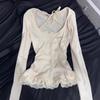 Fake Two-piece T-shirt Women's Spring Slim-fitting Design Lace Splicing Long-sleeved Top