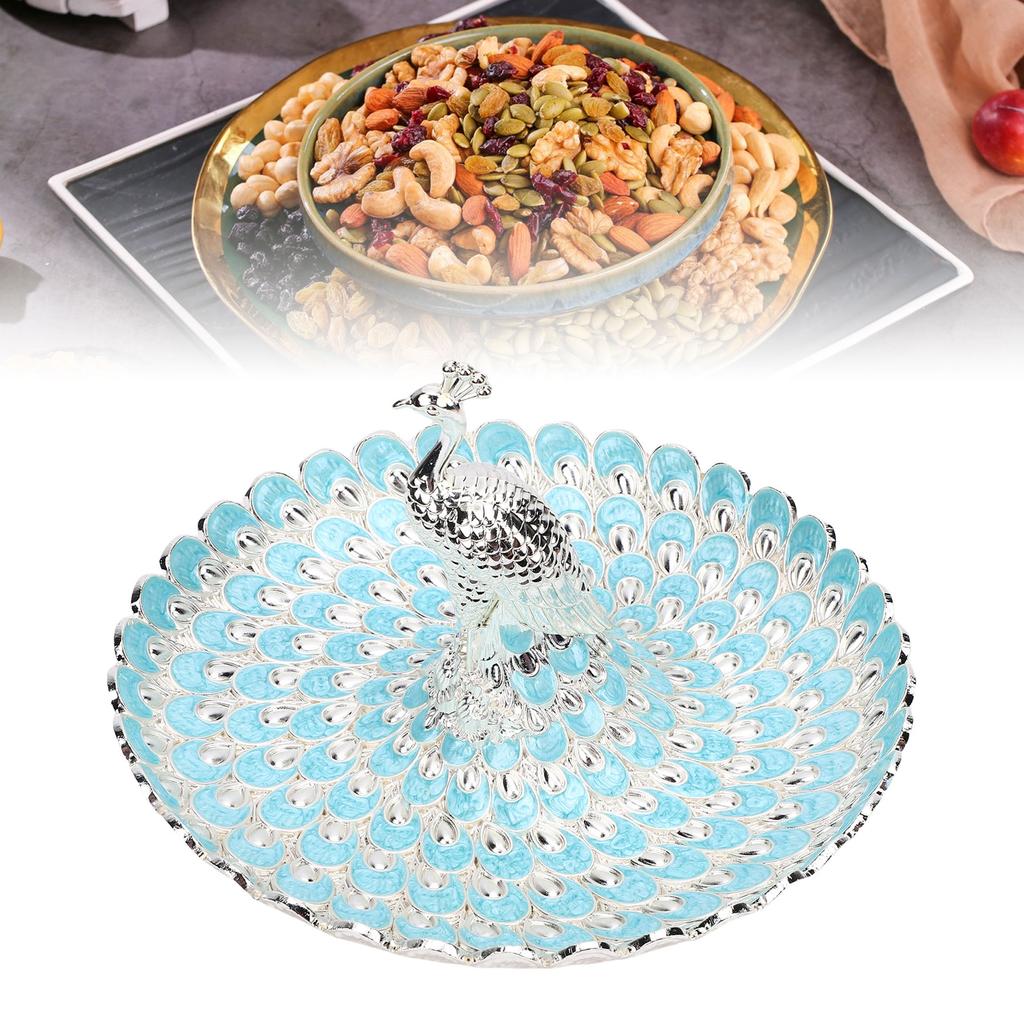 Peacock Fruit Tray Zinc Alloy Metal Peacock Plate for Bread Snacks Cakes Candies