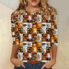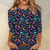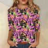 Women's Fashion Casual Three-quarter Sleeve Halloween Printed Round Neck Top