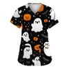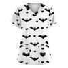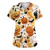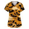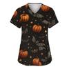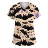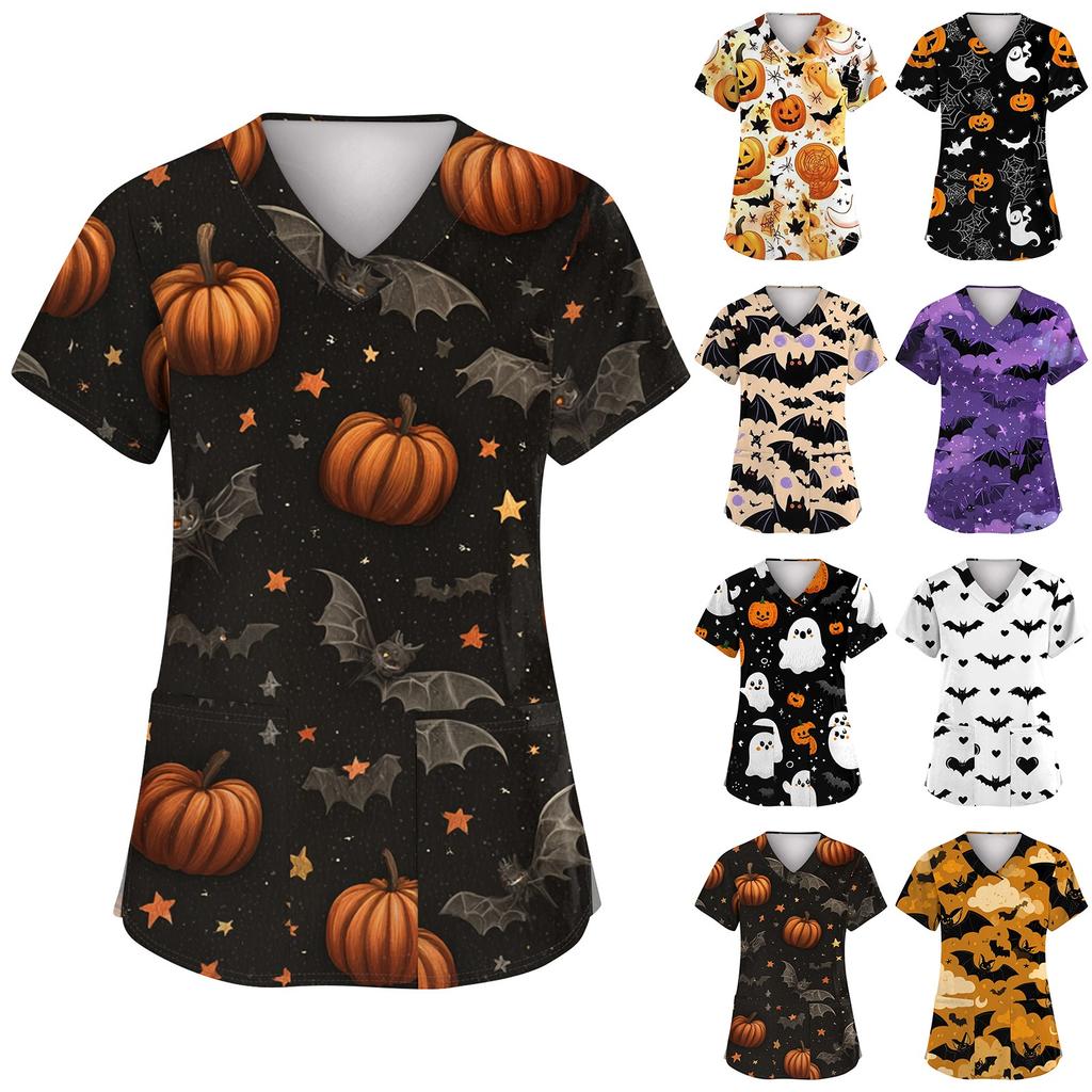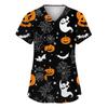 Women's Fashion Short Sleeve Halloween Printed V-Neck Pocket Workwear Tops