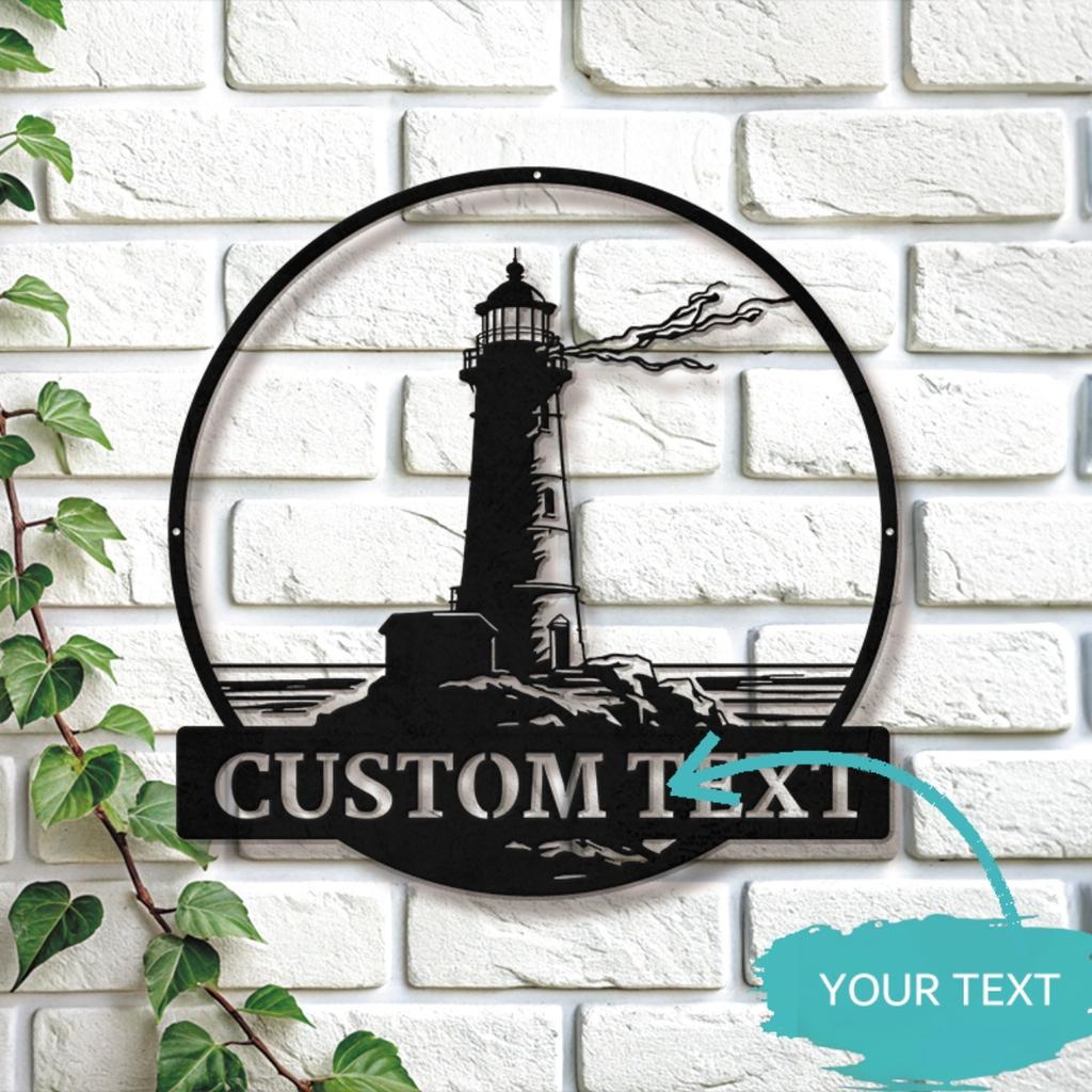 Custom Metal Lighthouse Sign, Personalized Nautical Wall Art, Coastal Home Indoor Outdoor Decor