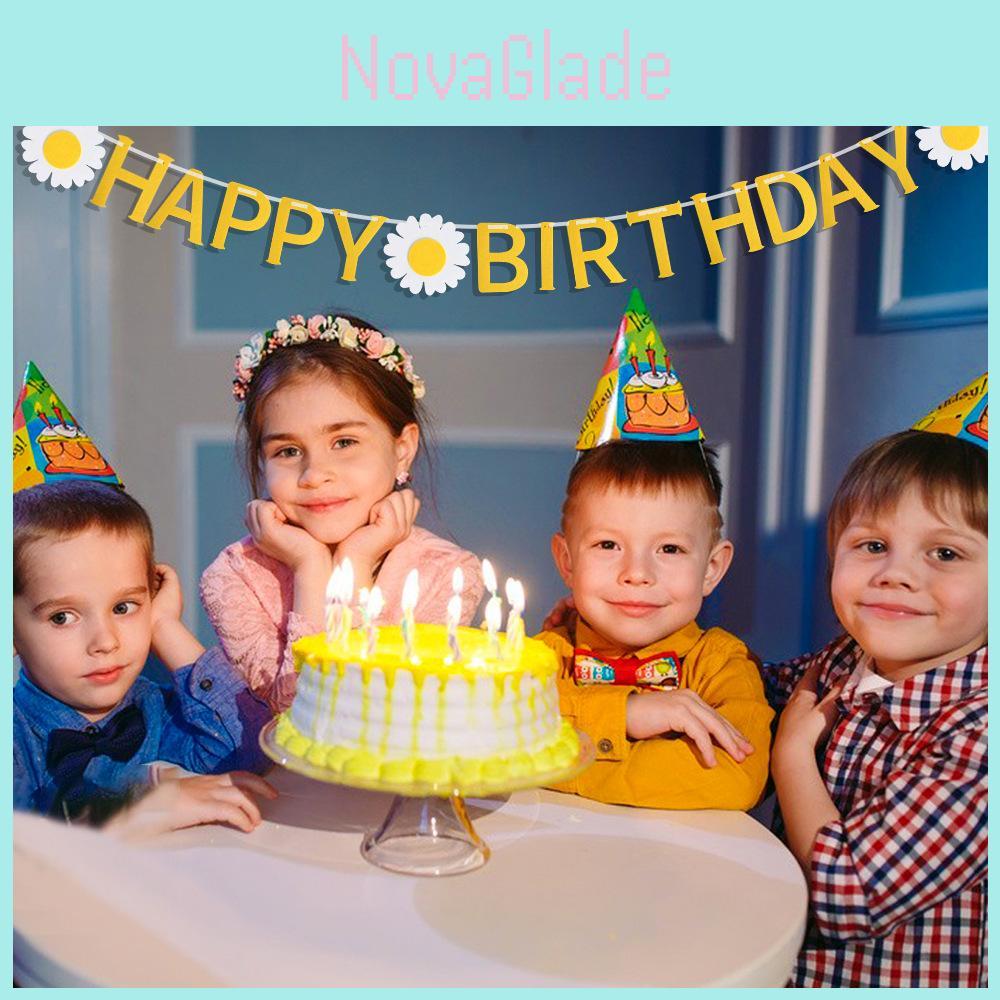 New Style Daisy Children's Birthday Happy Flag Banner For Baby's Party Decoration