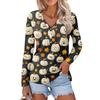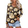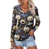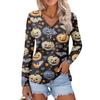 Women's Casual Fashion Sexy Comfort Halloween Printed V-Neck Button Long Sleeve