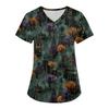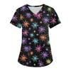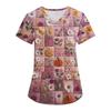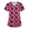 Women's Printing Uniform Work Uniform V-neck Pockets Basic Short Sleeve Pullover Top