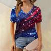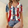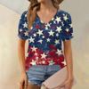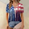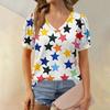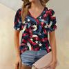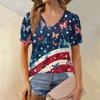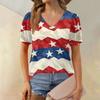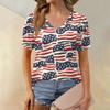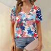 Women's Fashion Independence Day Print Top Puff Short Sleeve V-neck T-shirt Loose Casual T-shirt